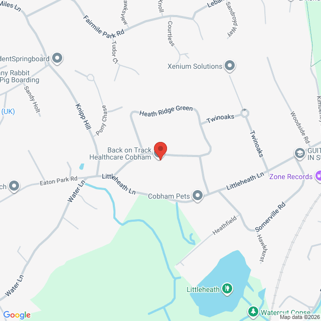Back On Track Healthcare- Cobham Situated in a residential area on Links Green Way, off Littleheath Lane, Cobham KT11 2QH